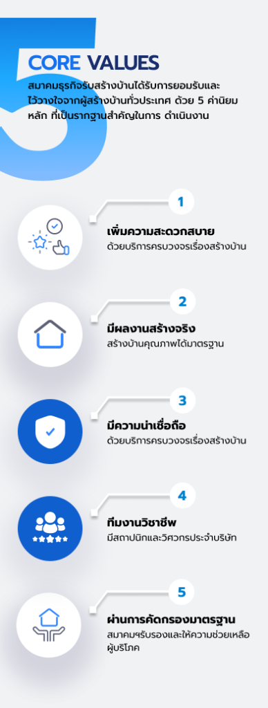 ผู้สร้างบ้านทั่วประเทศ ด้วย 5 ค่านิยมหลักที่เป็นรากฐานสำคัญในการดำเนินงาน